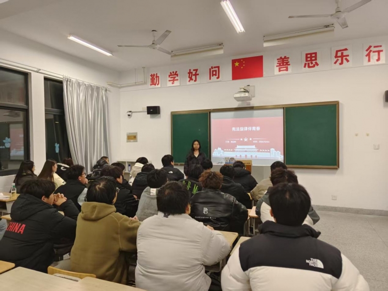 活动前期,各班级团支部积极响应、认真筹备。主题团日活动期间,团支书首先围绕宪法作为国家根本大法的地位和作用展开讲解,结合青年学生的成长实际,阐述宪法与个人发展、社会进步之间的紧密联系,引导同学们深刻认识树立宪法意识、培养法治思维的时代意义。